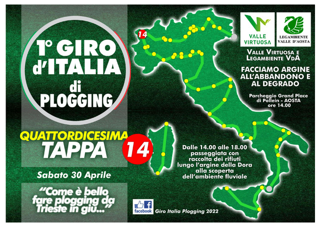 Il 30 aprile si terrà in Valle d’Aosta la quattordicesima tappa del 1° Giro d’Italia di Plogging.
