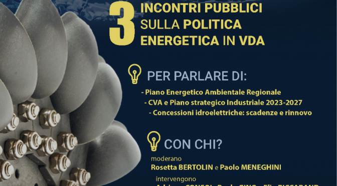 TRE INCONTRI PUBBLICI SULLA POLITICA ENERGETICA IN VDA