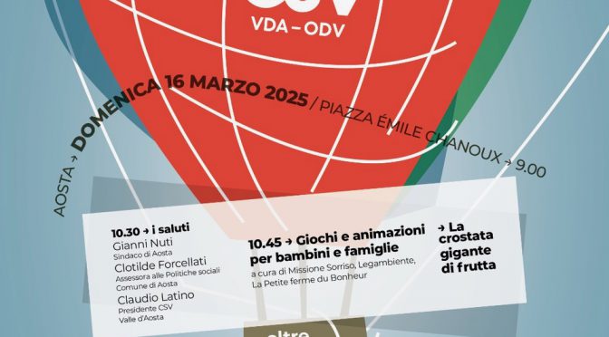 Nella mattinata di domenica 16 marzo il CSV  in piazza Chanoux ad Aosta festeggia i suoi primi 25 anni! Dalle ore 9 sarà possibile – vento permettendo -salire su una mongolfiera ancorata a terra.